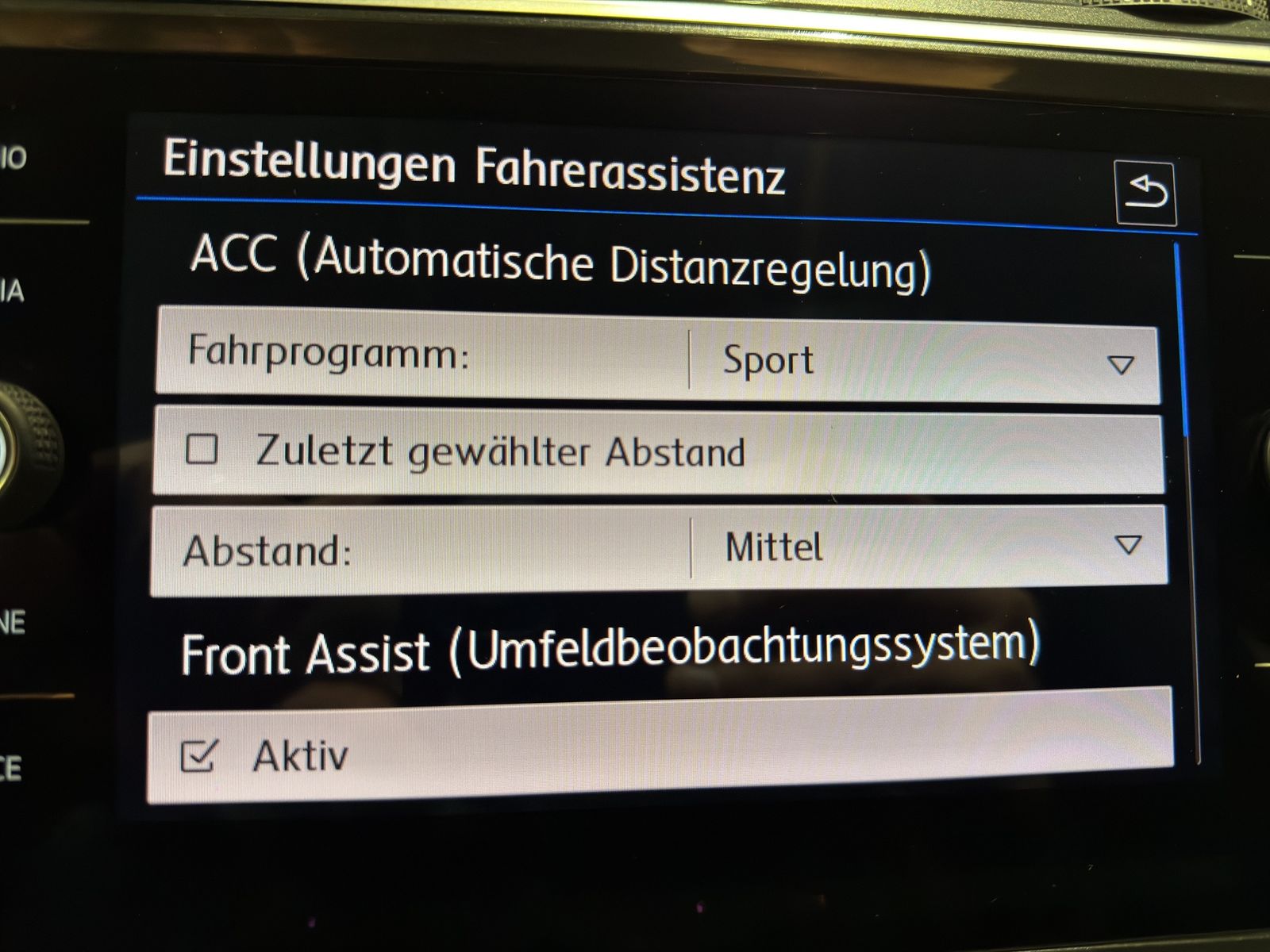 - Fahrassistenz-System: Autom. Distanzregelung (ACC) mit Umfeldbeobachtungssystem (Front assist, bis 210 km/h)